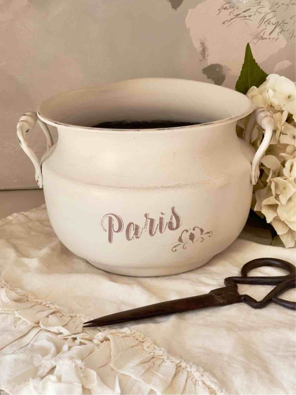 IN LEGA DI RAME, DIPINTO A MANO COLORE BEIGE CHIARO CON SCRITTA DECORATIVA IN ROSA ANTICO