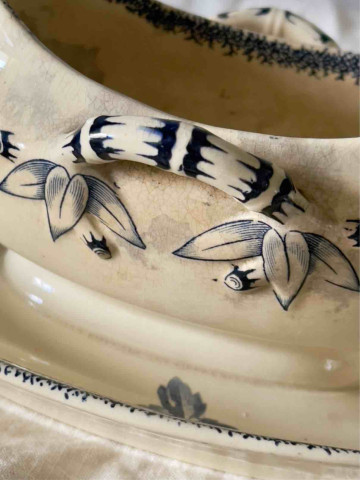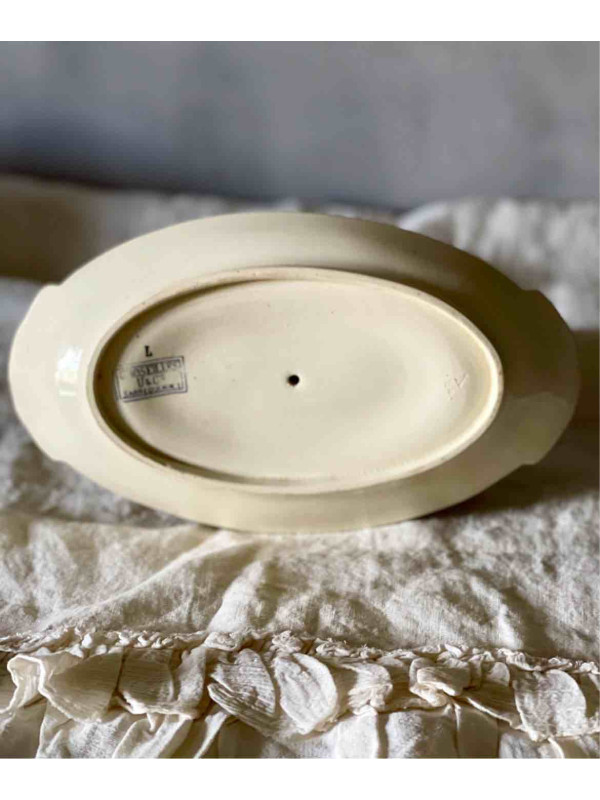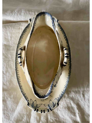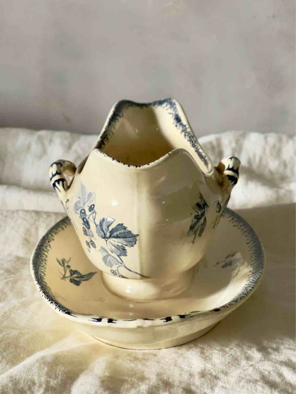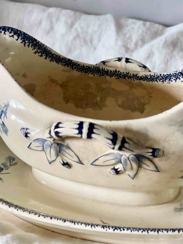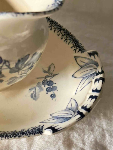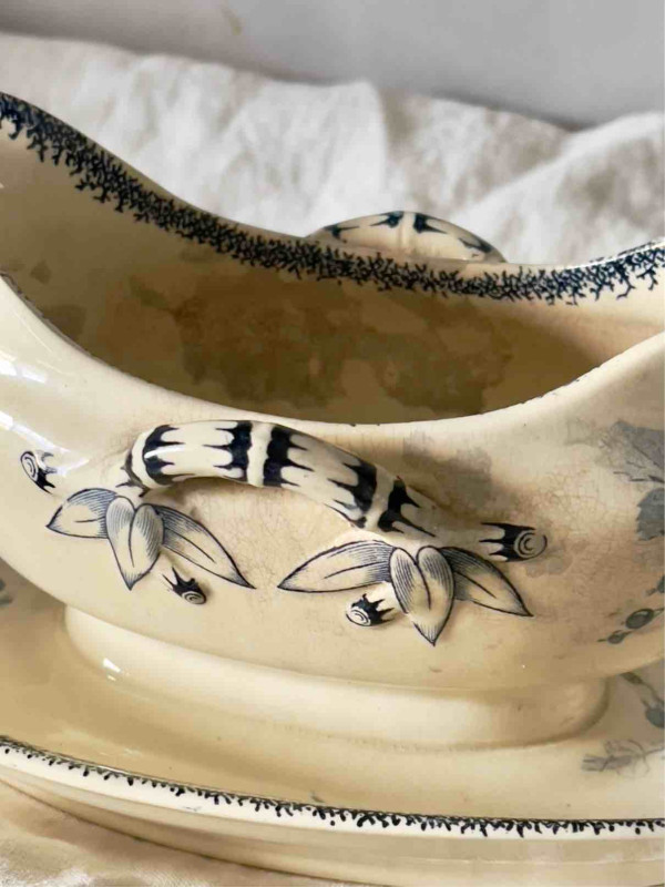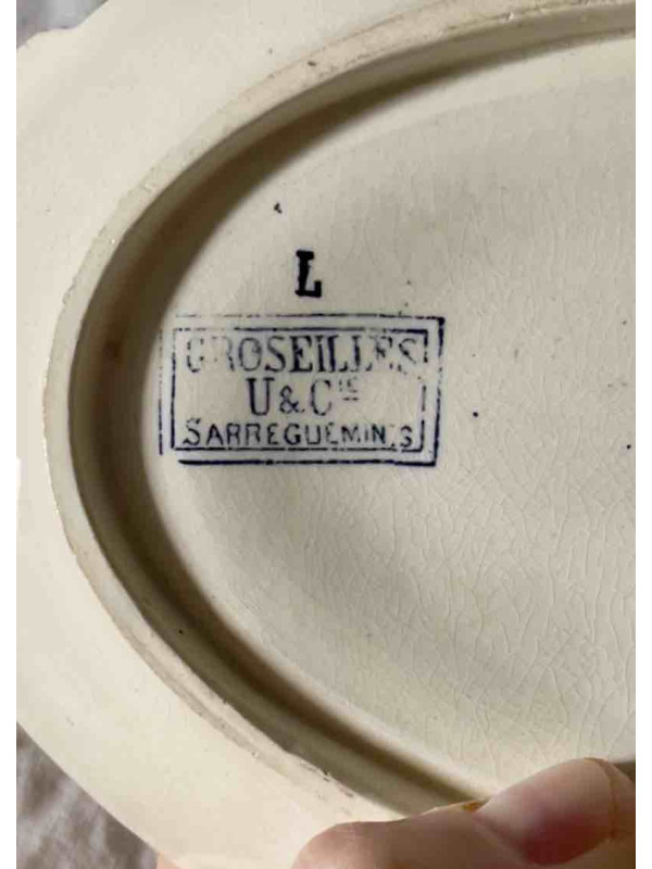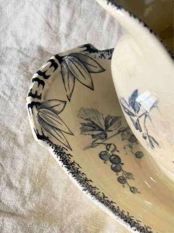 ANTICA E GRANDE SALSIERA FRANCESE CON PIATTINO FISSO INCORPORATO, A MARCHIO SARREGUEMINES COLLEZIONE GROSEILLES