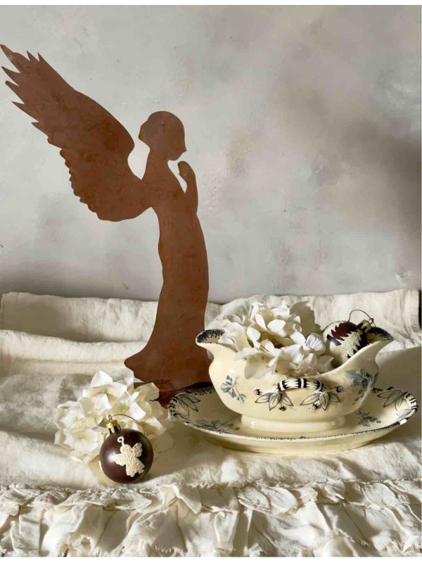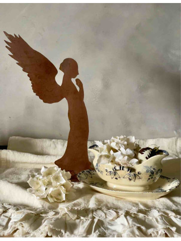 Maestoso angelo di ruggine, elegante e molto particolare per la lavorazione dell'ala