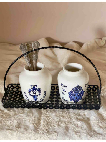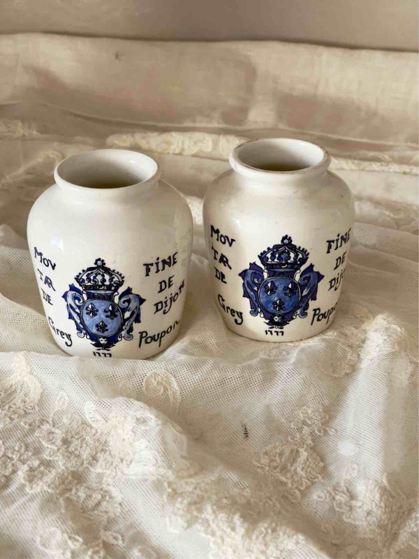 RARA COPPIA DI POTS A MOUTARDE IN CERAMICA TERRE DE FER A MARCHIO SARREGUEMINES