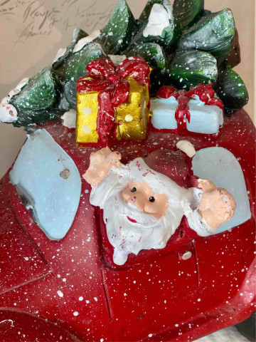 PORTA TANTI PICCOLI SEGNI DEL TEMPO COME LA MANCANZA DI UN DITO DI BABBO NATALE E LA MANCANZA DEL COPERCHIETTO IN PLASTICA PER L'ALLOGGIAMENTO DELLE BATTERIE MA E' FUNZIONANTE E VERAMENTE BELLISSIMO