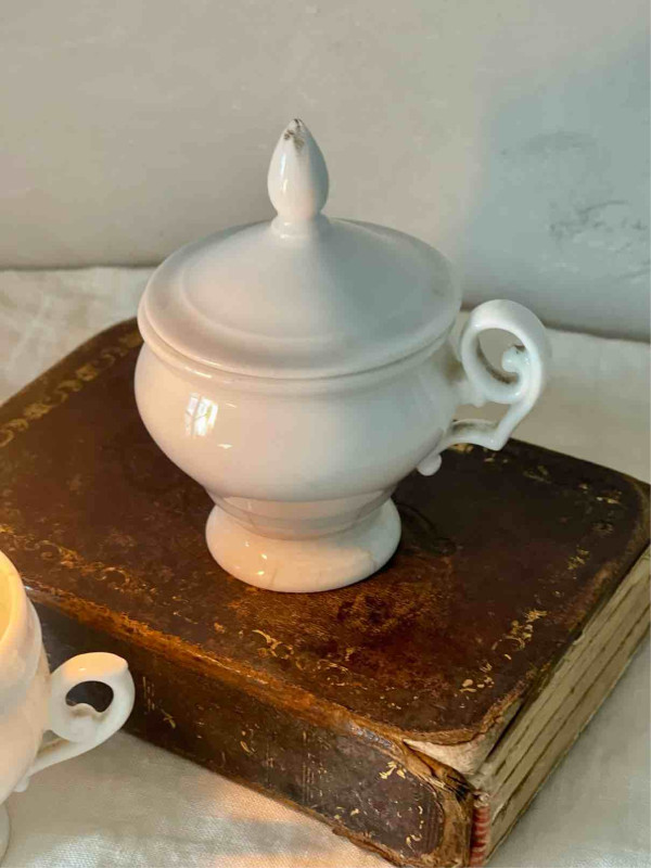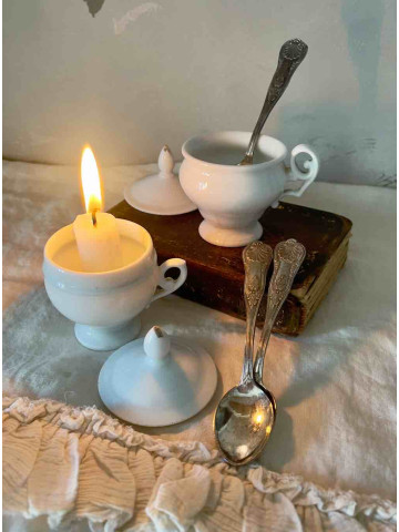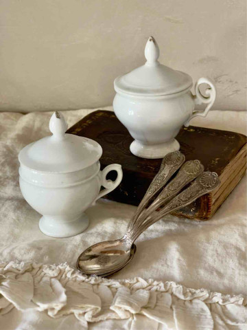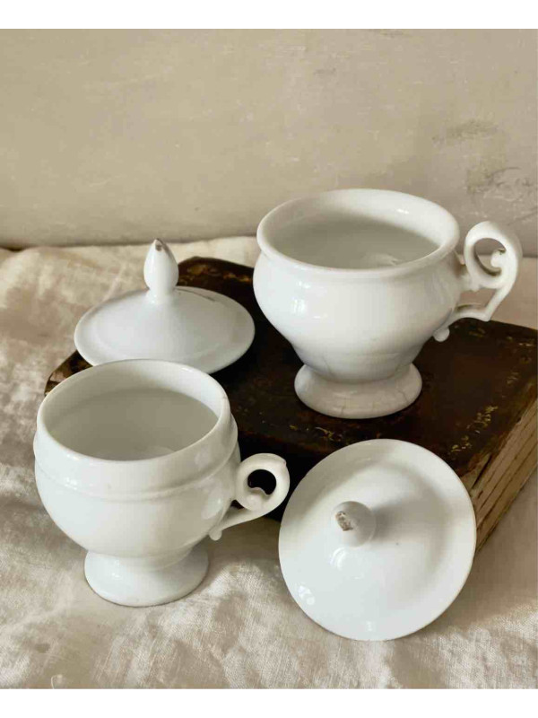 PROVENGONO DIRETTAMENTE DA PARIGI QUESTI DUE PICCOLI E DELIZIOSI POT A CREME FRANCESI IN PORCELLANA BIANCA