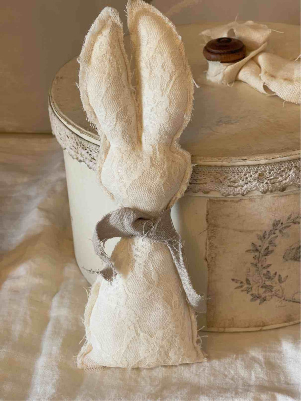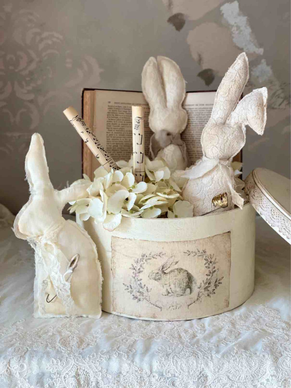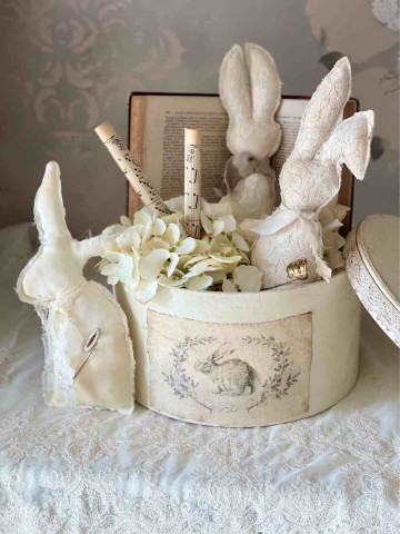 Cappelliera dipinta a mano e decorata con nastro ed etichetta in lino