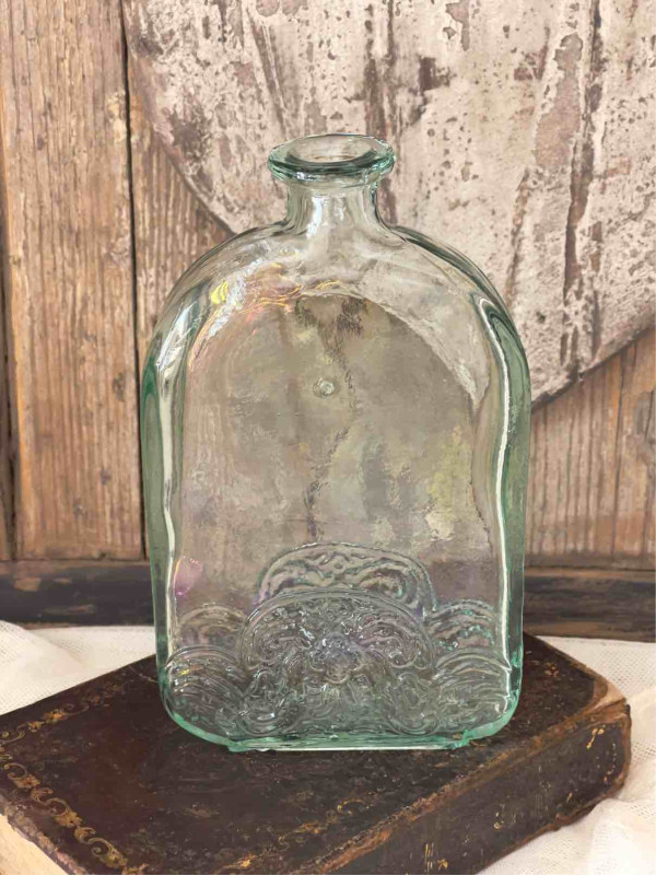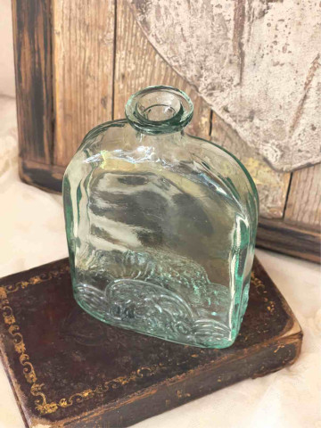 ELEGANTE BOTTIGLIA IN VETRO TRASPARENTE CON DECORAZIONE A RILIEVO, RISALENTE ALLA SECONDA META' DEL NOVECENTO