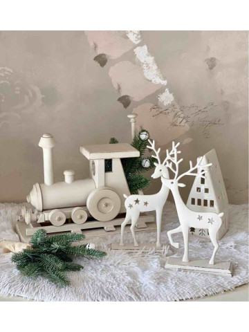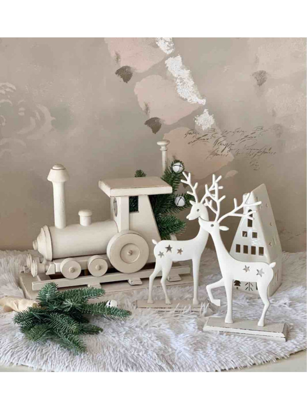 ELEGANTE RENNA IN METALLO SU BASE IN LEGNO