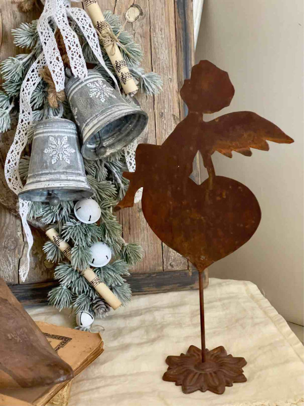 Delizioso angioletto in ruggine con cuoricino appeso alla mano