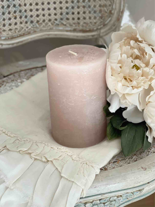 Candela molto elegante marmorizzata con sfumature di rosa cipria, non profumata